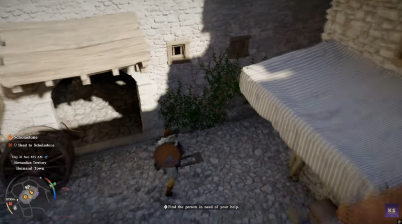 You’ll find your first reliable grinding stone in Hernand City, one of the early major hubs in the game. The most accessible one is located near Rhett’s Shop, making it easy to reach during normal exploration.