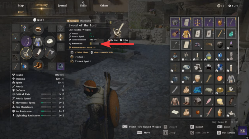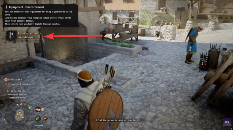 Interact with the grinding stone to instantly reinforce your weapon.