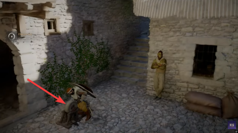 Look for the grinding stone nearby—it appears as a fixed interaction point.