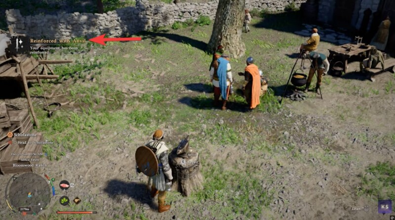 Armor reinforcement works slightly differently but is even more impactful defensively. To reinforce armor, you’ll need to locate an anvil, and one of the earliest known spots is just outside Hernand City near Bloomwood Ranch.
