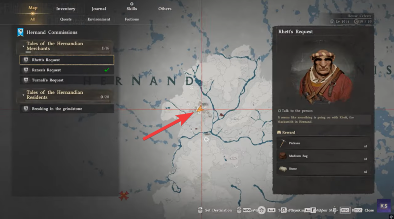 Travel to Hernand City and locate Rhett’s Shop area.