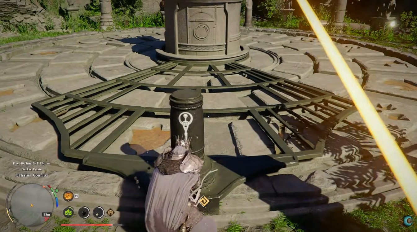You’ll find this puzzle within the Serkis Estate region, marked as a Mysterious Energy encounter. The area is partially obstructed when you arrive, with two pillars blocking the central mechanism. Until those are removed, the puzzle cannot be activated properly. The environment is relatively compact, so once you’re there, spotting the mechanism and symbols is straightforward.