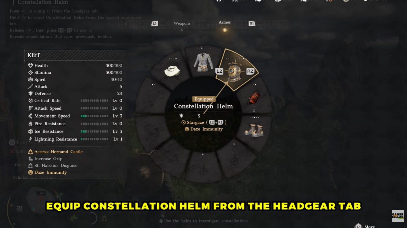 Once obtained, you need to equip it properly. Open your gear menu and navigate to the headgear tab, where you’ll find the helm. After equipping it, switch to the special equipment tab and select the Constellation Helm as your active tool. This step is crucial, as simply owning the item won’t allow you to use its functionality.