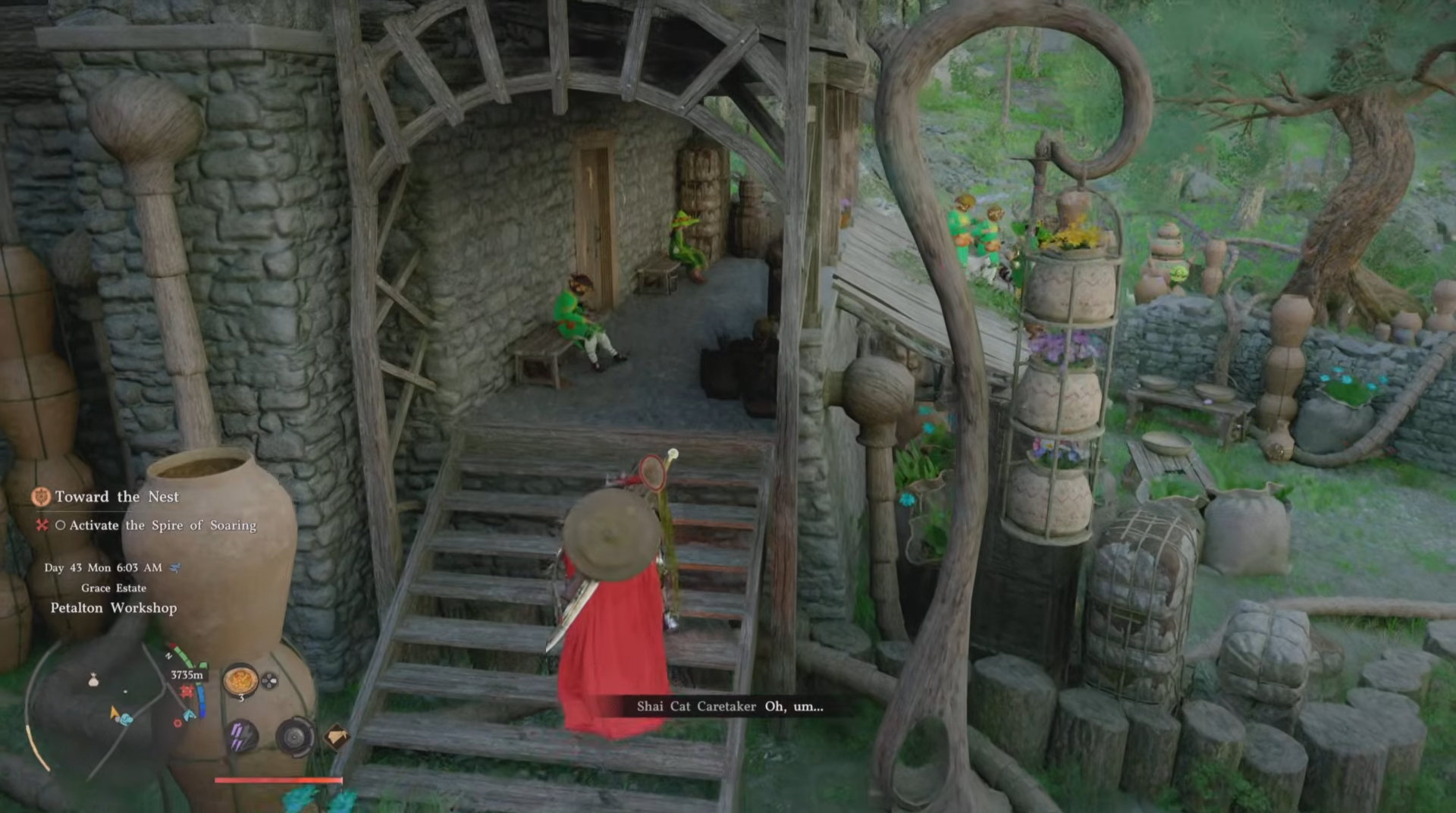 Head to Petalton Workshop (central village house on map, herb processing spot also crafting arrows).