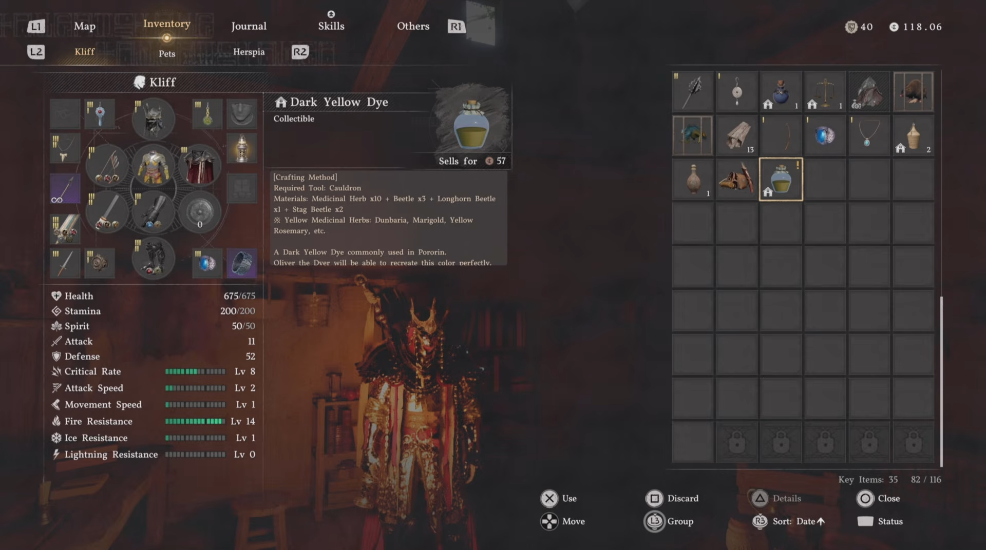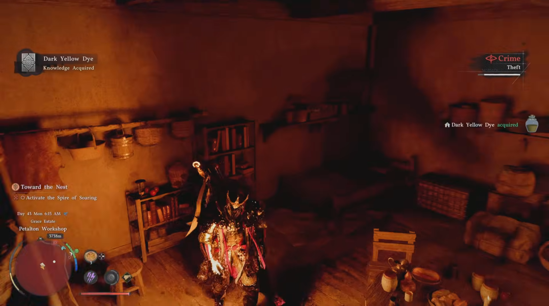 - Steal Dark Yellow Dye from Petalton Workshop; buy regular Yellow Dye for 150 copper from Dyehouse vendor Devin.