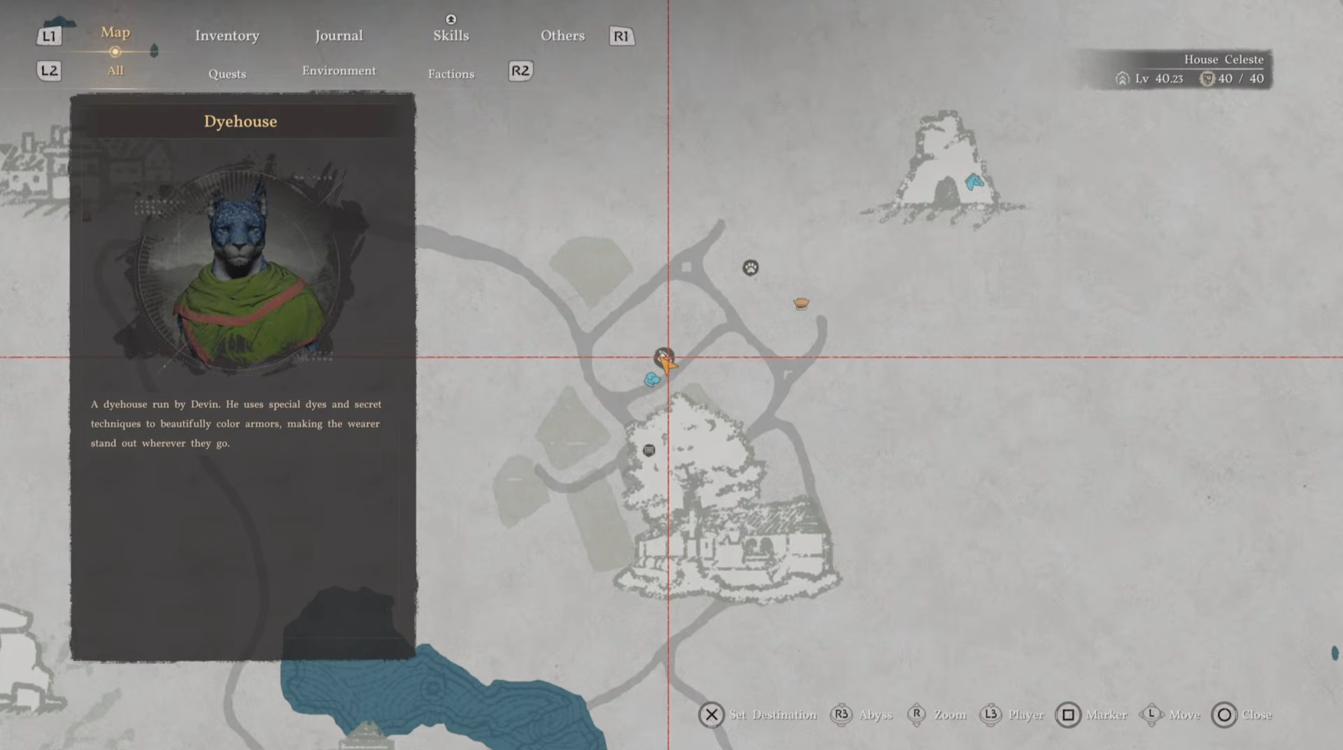 Interact with dye station to access yellow palette (village-specific sets unlock here).