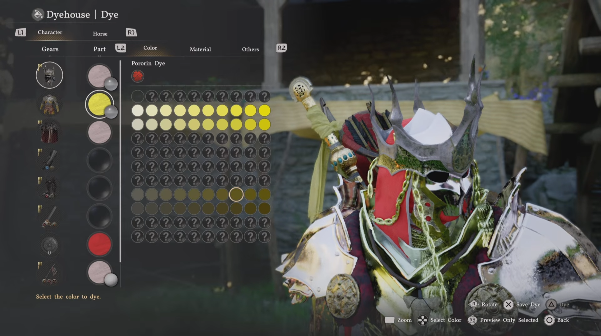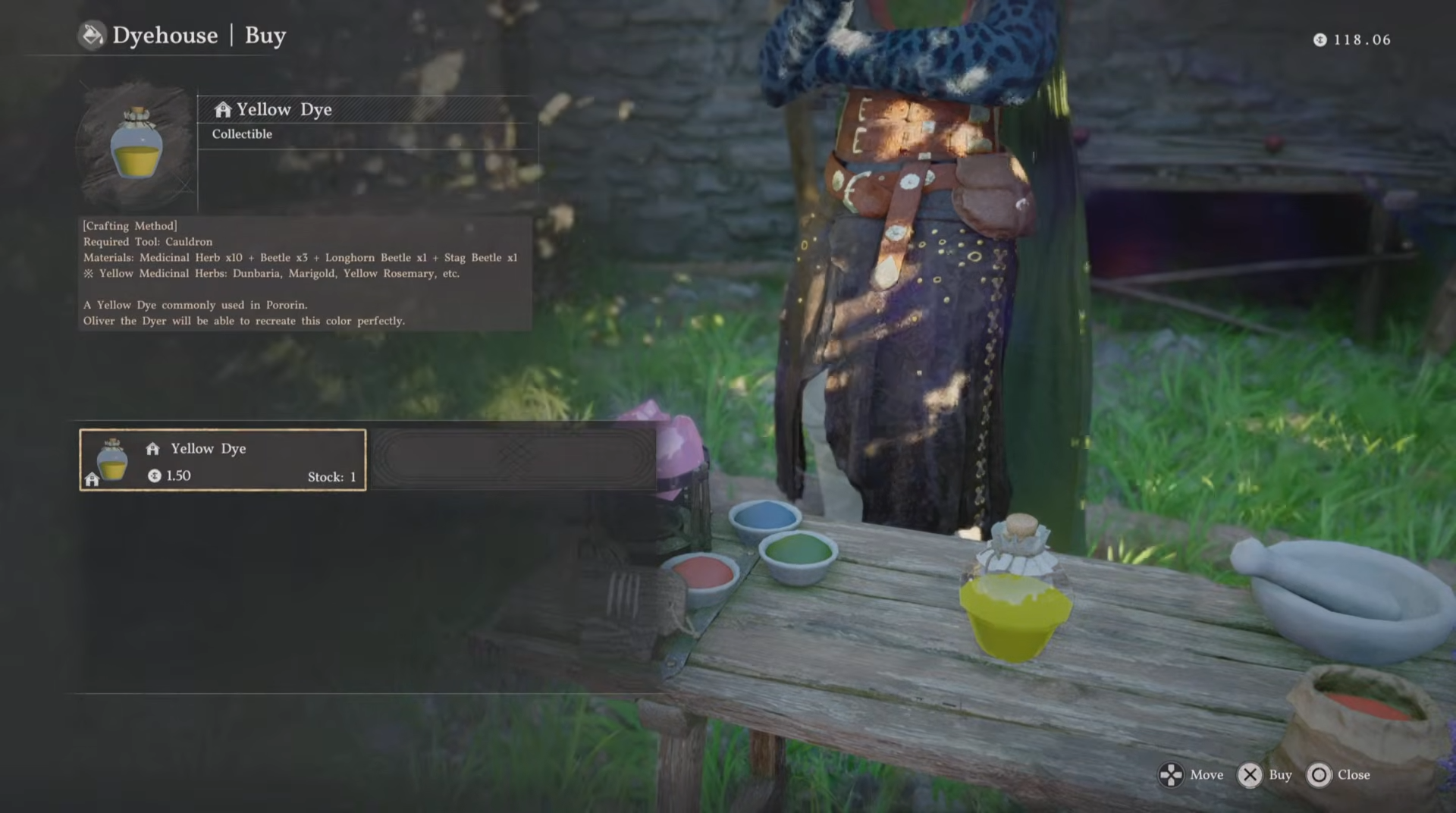 | Dark Yellow Dye | Petalton Workshop shelf | Steal (free) | Deep, rich gold tones |