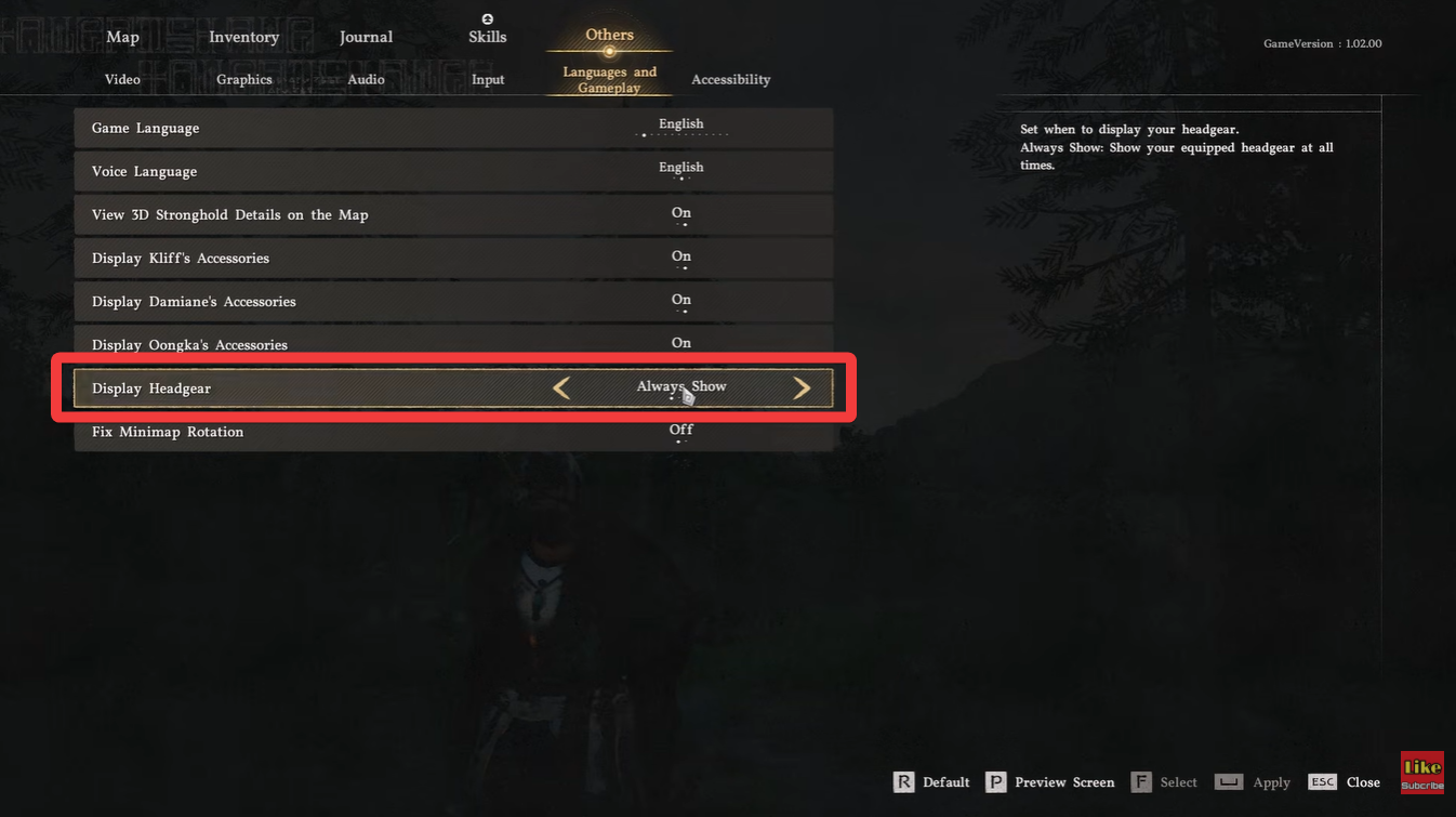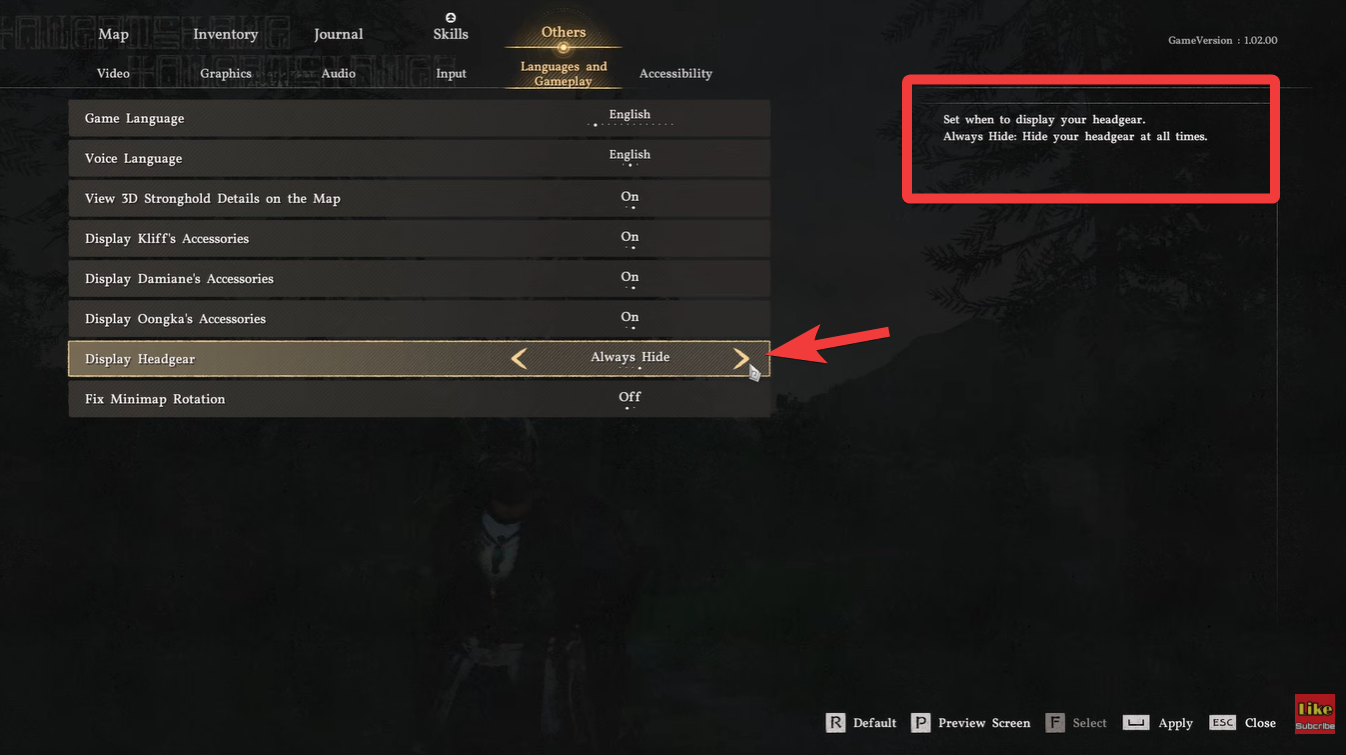 To locate it, open your settings and navigate to the Language & Gameplay section. This is where all immersion and UI-related toggles are grouped together, including the newly added headgear customization.