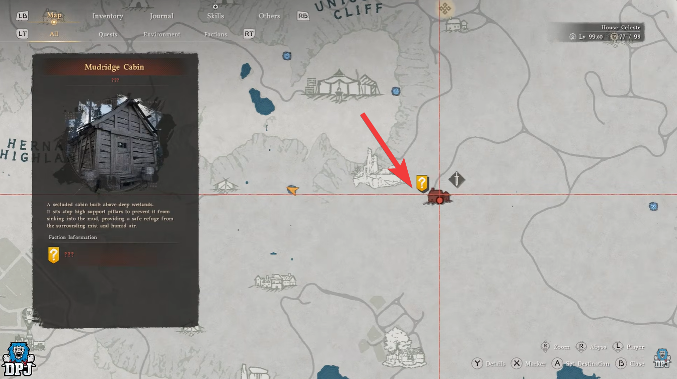 Mudridge Cabin is located just below Unicorn Cliffs, not far from the Hernand region. The area is relatively accessible early in the game, but it is not entirely safe.