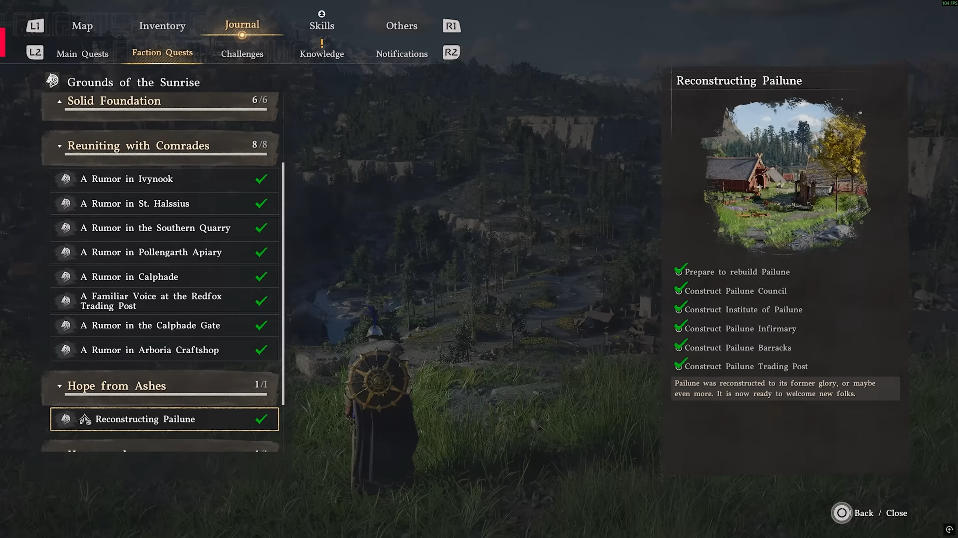 A major part of the setup is the reconstruction and mission progression tied to Pailune and the Greymane camp route. The camp must be pushed all the way to its highest upgrade tier, which is indicated by the bridge connecting the camp and the player house and by the dispatch mission showing a fourth upgrade state.