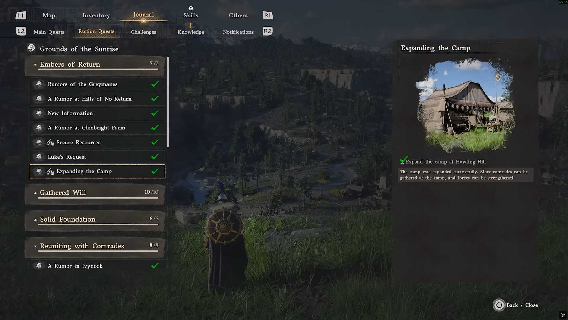 - Some prerequisite quests are conditional, so you may need to finish faction missions and related requests before the required camp progression becomes available.