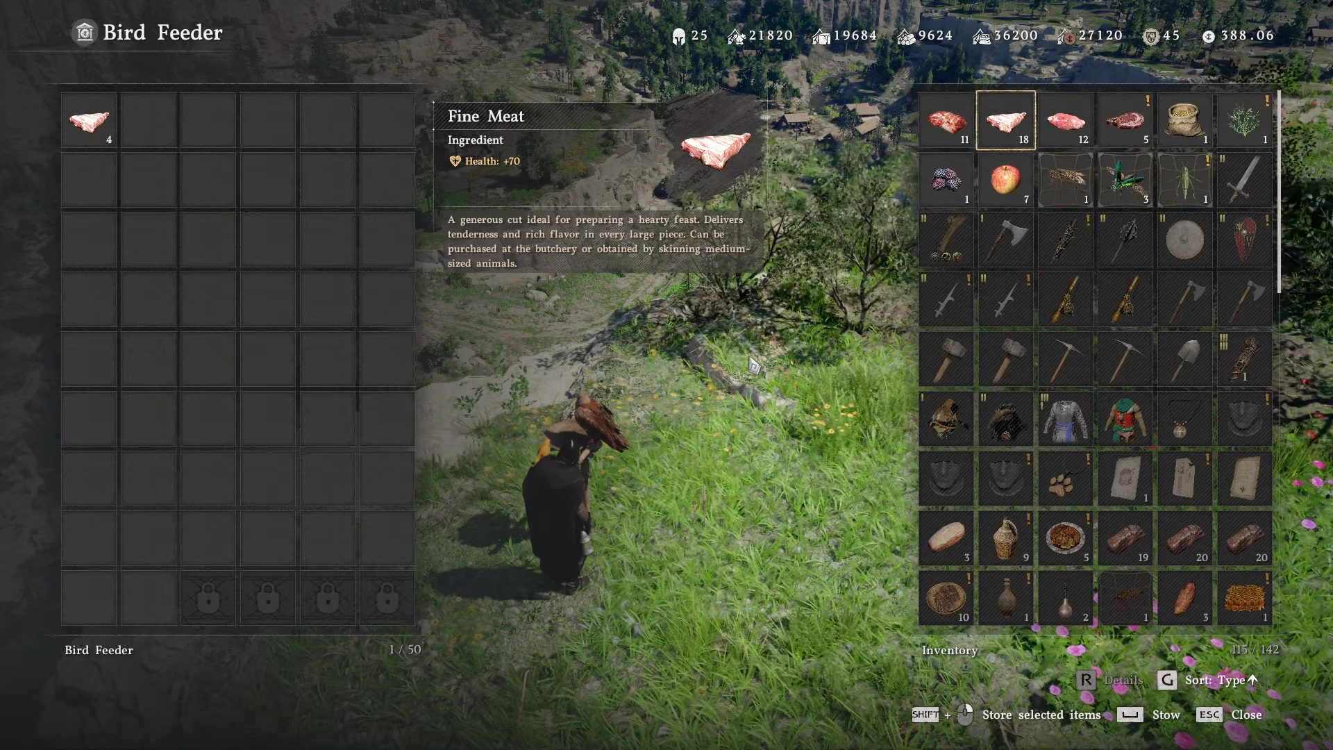 Different foods summon specific birds, so stock up via hunting or gathering.
