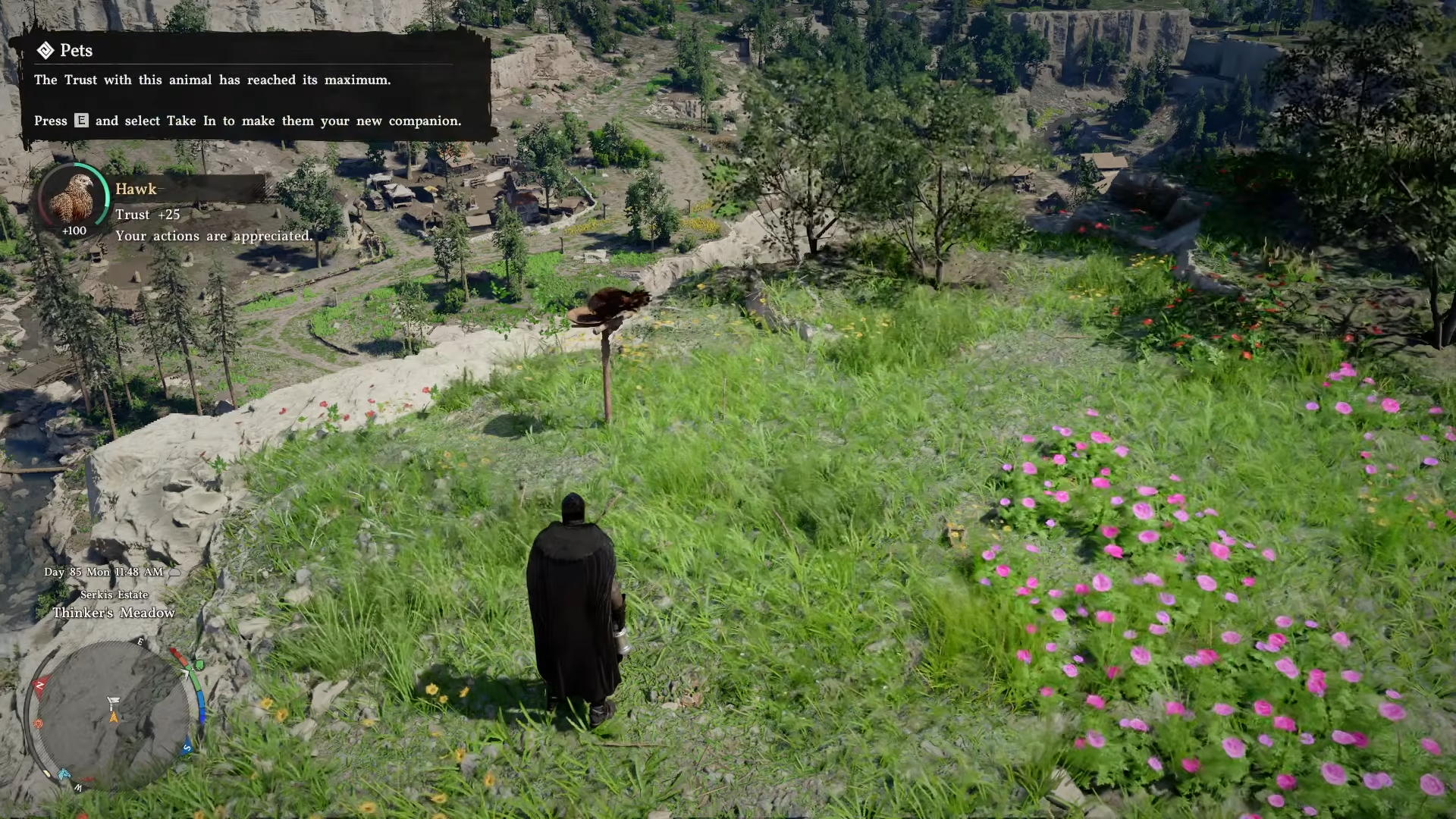 Birds excel in high places like Lioncrest Manor cliffs or Ancient Ruins edges, where they perch safely. They loot enemies, gather timber, and follow during combat or exploration. Predatory types suit combat zones, while small ones fit village runs; experiment in diverse spots like Goldleaf Guildhouse or Crimson Mountains for rare spawns.