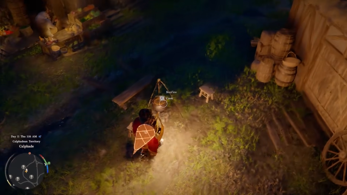 When you explore the map, look specifically for bonfires or cooking pots. These are usually placed near camps, outposts, or safe zones. As you approach one, your map or HUD will display an interaction icon, confirming that it can be used for resting.