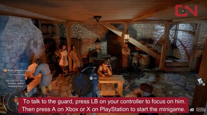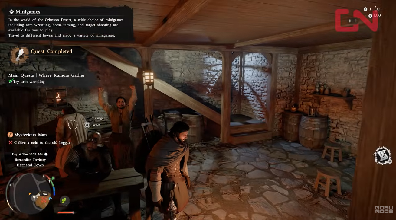 You’ll first encounter arm wrestling during the “Where Rumors Gather” quest in Crimson Desert, typically inside taverns where rumors and side activities unfold. While it may seem simple at first, this mini-game requires precision rather than brute force, making it one of the earliest skill checks in the game.