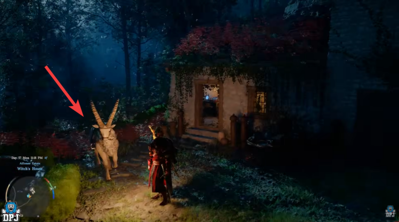 With the horn in your inventory, the final step takes place in Witchwoods at the Witch’s House, where crafting becomes available.