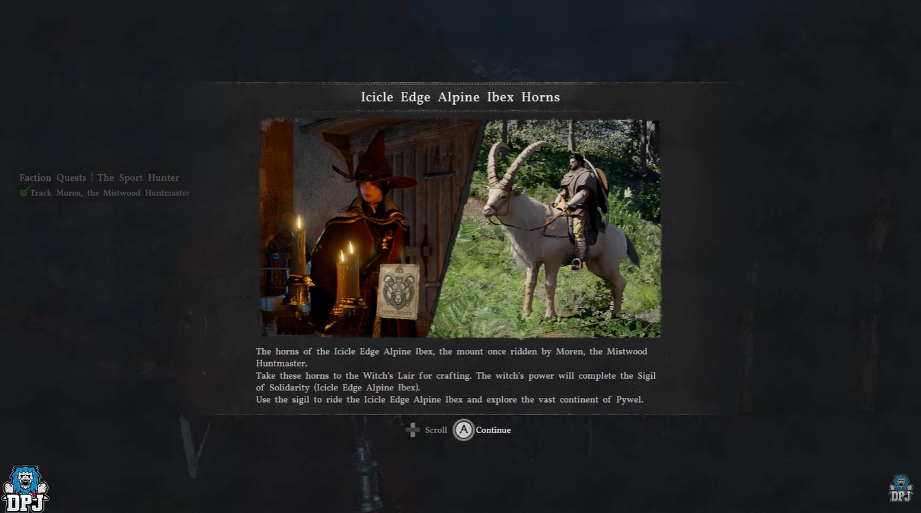 - You receive the Ibex Horn required for crafting the unlock item.