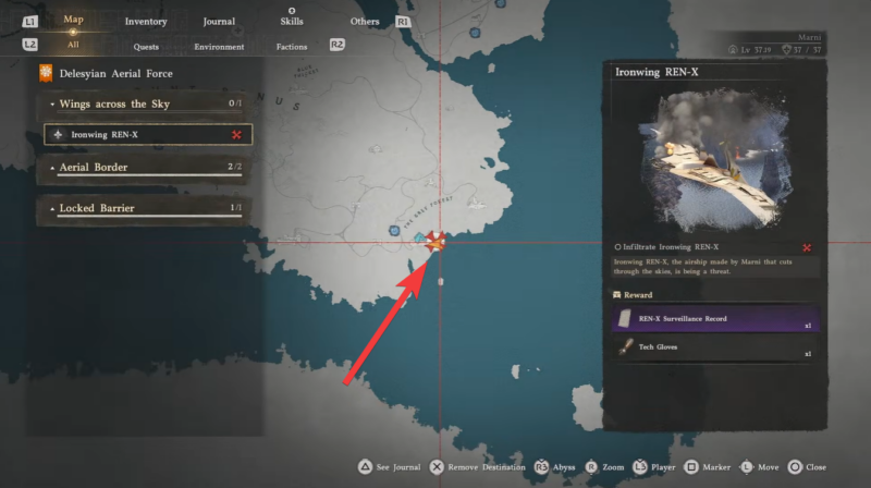 The mission begins in the far southern end of the Grey Forest within Delesyian Territory, which serves as your launch point. From here, the game expects you to already have progressed far enough into the story to unlock advanced traversal tools.