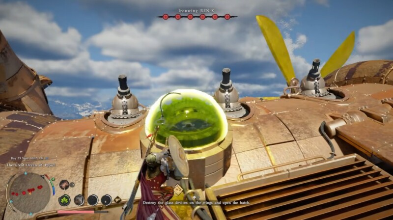 The primary objective is to destroy six glass orbs positioned along the wingspan of the airship. These orbs act as structural or energy nodes, and breaking them is necessary to progress. You’ll need to move carefully across narrow surfaces while maintaining balance and awareness of incoming hazards.