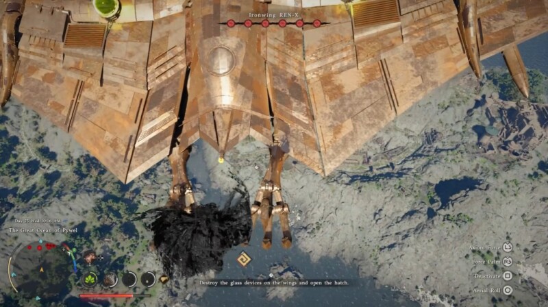 Once you land on Ironwing REN-X, the encounter shifts into a traversal-combat hybrid fight. Instead of facing a traditional boss with a health bar, you must interact with environmental weak points.
