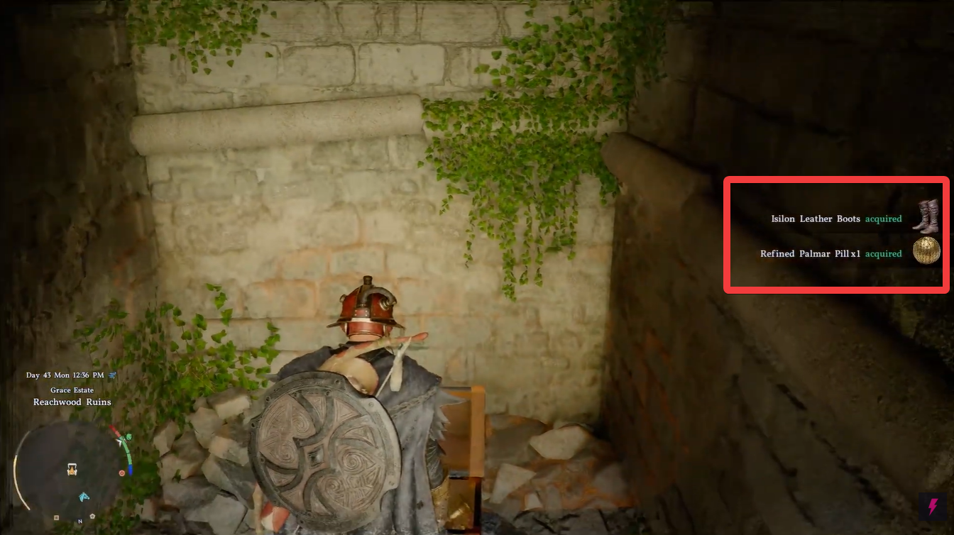 The Isilon Leather Boots are located in Reachwood Ruins, which sits southeast of Hernand and close to Porin Village. This area is relatively accessible early on, but you need to approach it carefully. The presence of hostile Shai NPCs near Porin Village can complicate your route if you have not progressed through their associated questline.