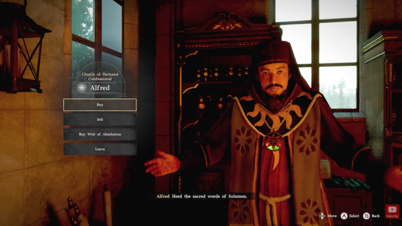 Once inside the church, approach the NPC stationed at a desk or counter. This character manages bounty-related interactions.