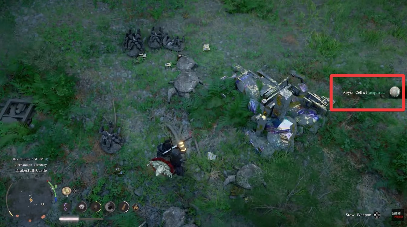 Travel to Drakesfall Gorge, where Abyssal enemies spawn frequently. Focus on clearing enemy clusters quickly to maximize drops. Repeat the route until you collect at least 6 Abyssal Cells.