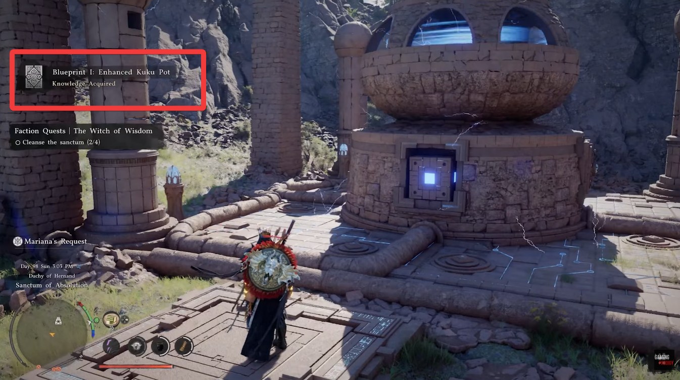 Head to the Sanctum of Absolution, another key dungeon-like location. Complete the cleansing process by defeating enemies and interacting with the sanctum core. Receive the Enhanced Kuku Pot blueprint, which is essential for crafting the boots.