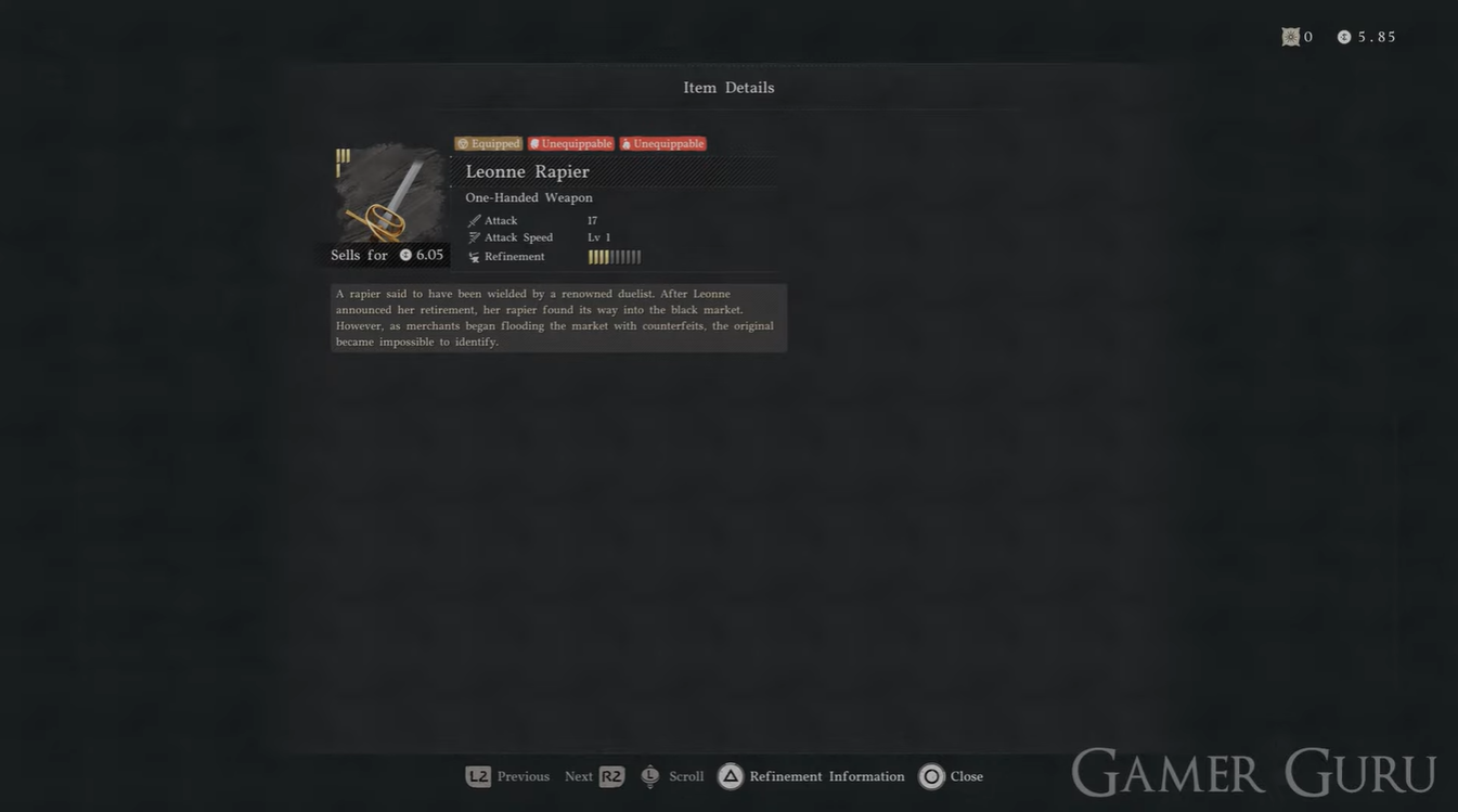 It is also a good backup weapon. Even if you later switch to stronger or more specialized gear, the Leonne Rapier can remain useful due to its refinement potential.