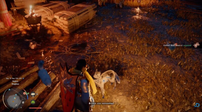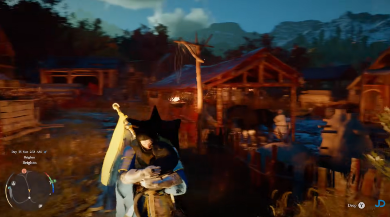 Set up or locate a nearby campsite in Beighen. This will act as your base of operations. Rest until midnight to reset daily limits and refresh nearby animal spawns.