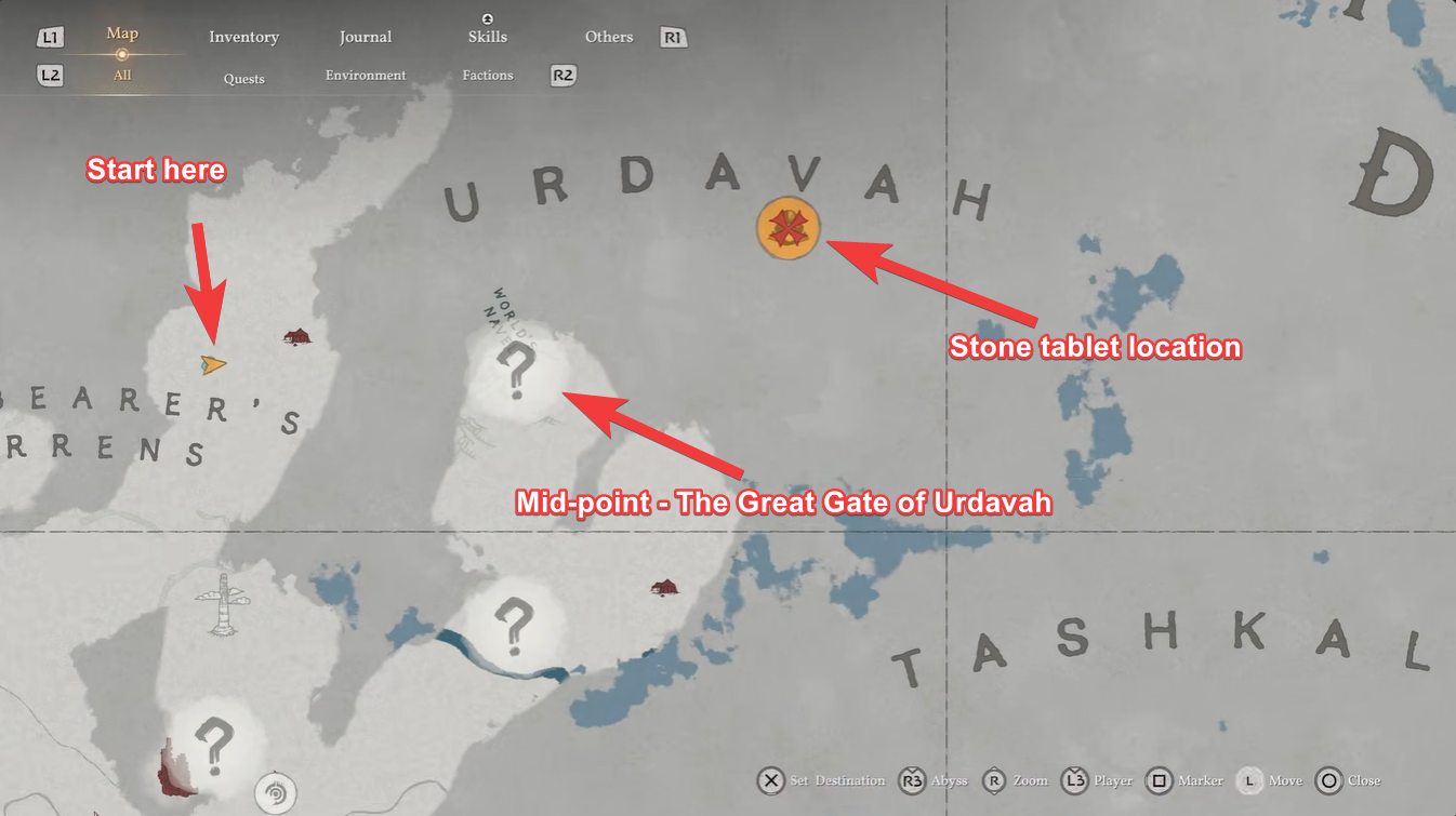 - The Mark of the Scar quest begins near Forebearer’s Barren and leads into Urdavah’s stone city.