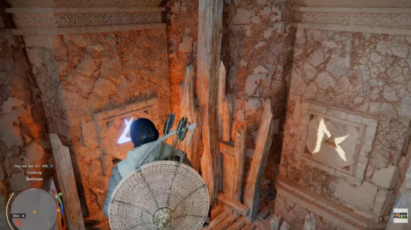 Before you begin collecting the stones, it’s important to understand how the puzzle behaves. Each tower in the Maze of Burhum is designed with hidden mechanisms. You’ll encounter engraved pillars that don’t initially reveal their secrets. Using Force Palm, you activate these pillars, causing them to rotate and expose hidden openings or items.