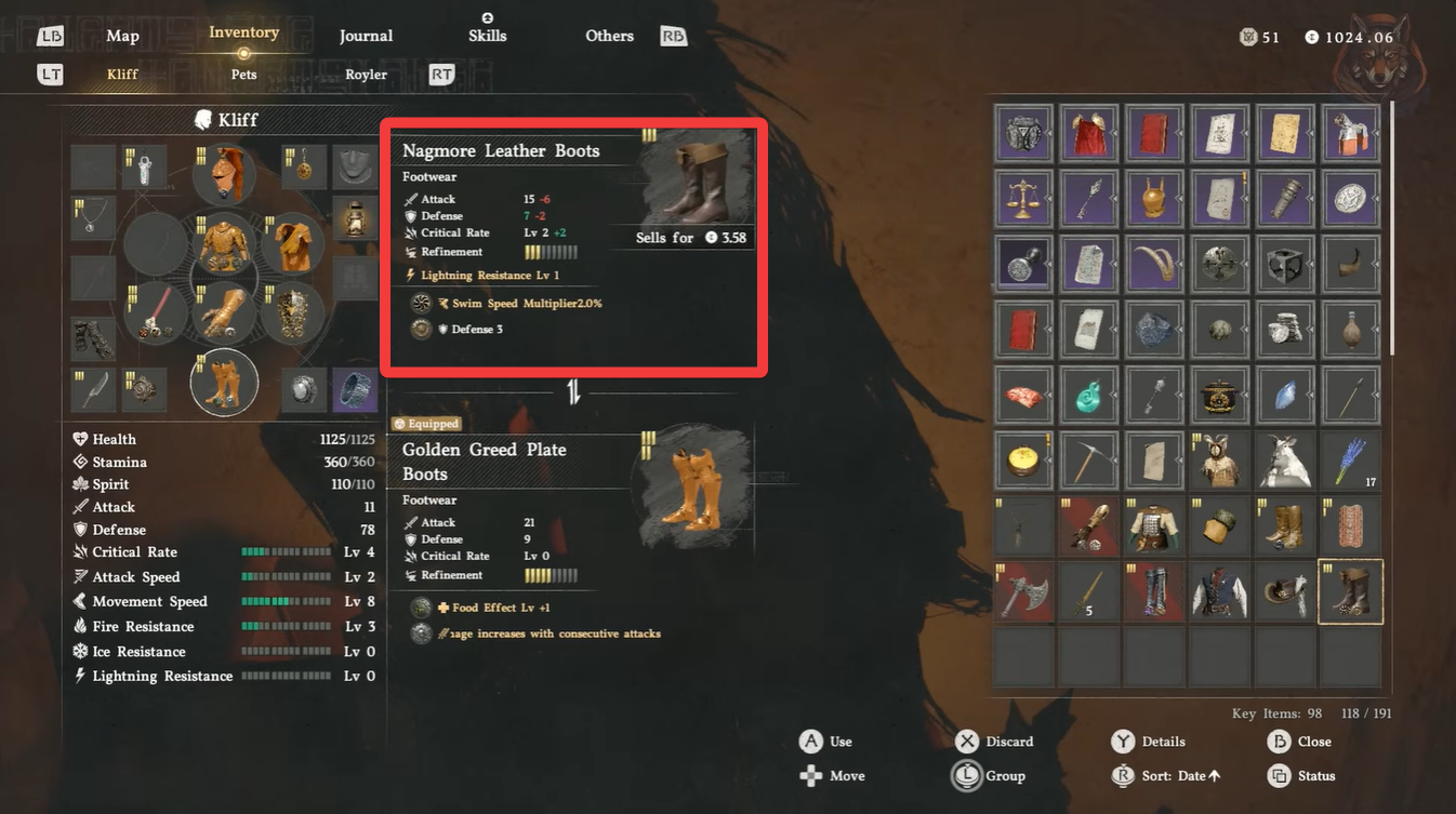 The Nagmore Leather Boots offer a balanced stat distribution, which makes them especially useful if you are not focusing on a single extreme playstyle. While the raw attack and defense values may not seem overwhelmingly high, the added critical rate and passive bonuses compensate significantly.