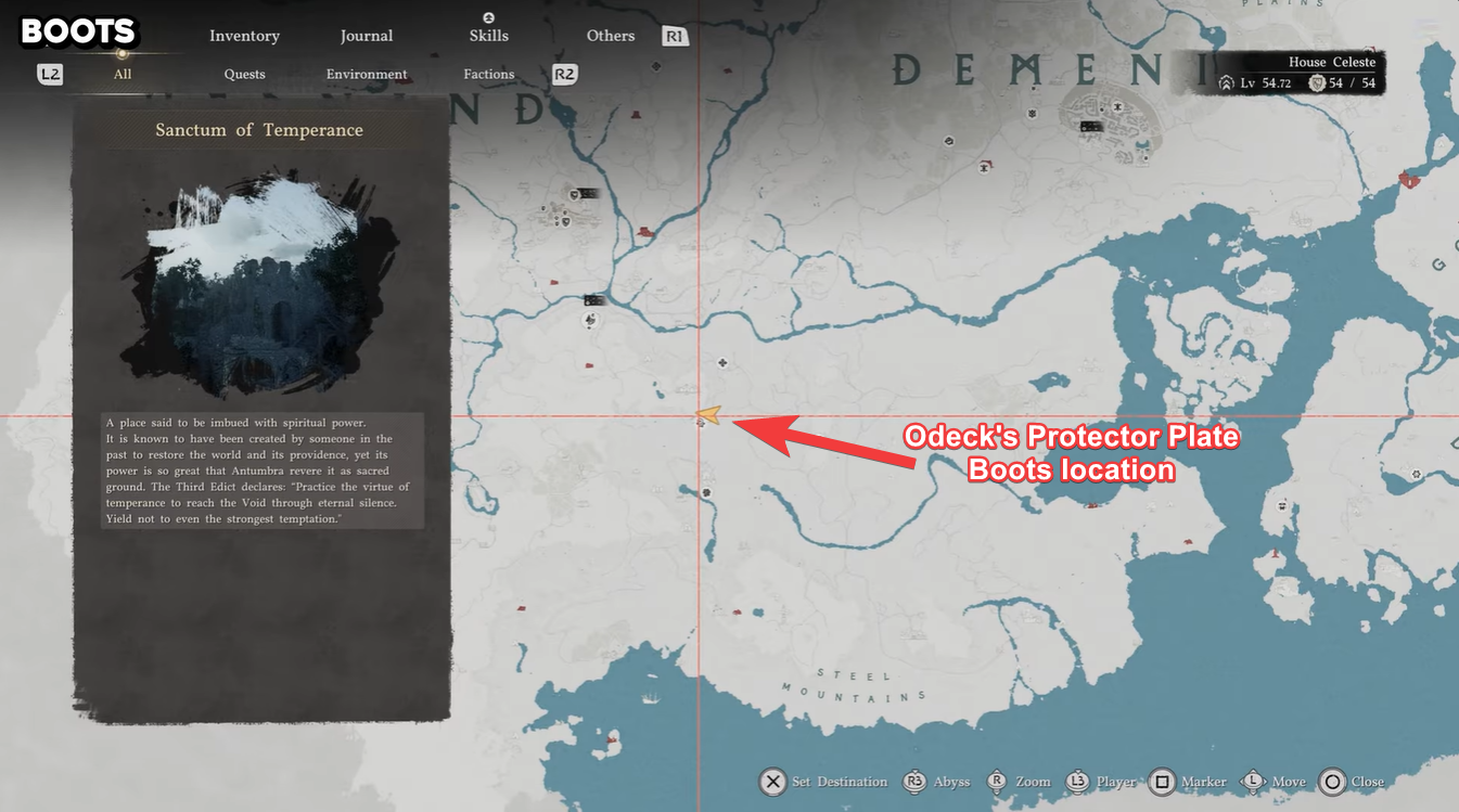 Location of Odeck’s Protector Plate Boots: Sanctum of Temperance. The boots provide a rare combination of movement speed and offensive stats, making them one of the most versatile pieces in the set.