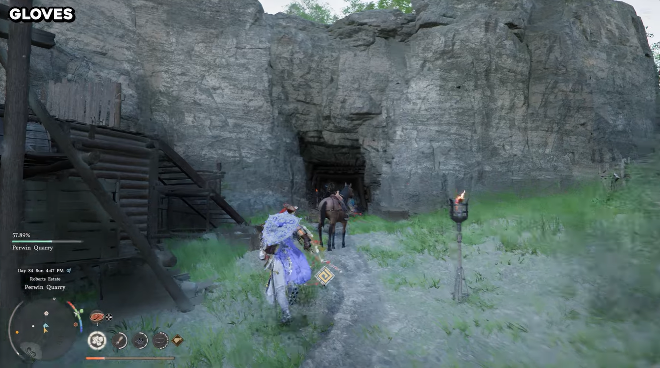 Use Focus Force to shatter the ore and reveal the entrance to the “Four Pits” area. Timing and positioning matter, so align your character properly.