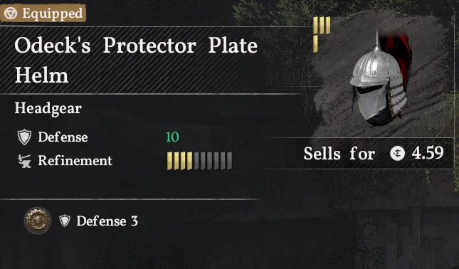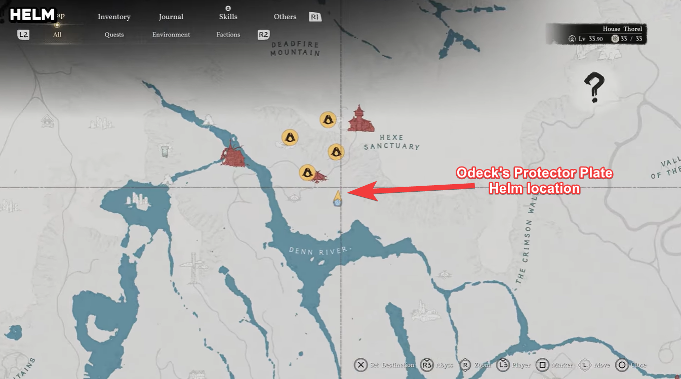 Location of Odeck’s Protector Plate Helm: Near the Hexe Sanctuary. The helm requires a more puzzle-oriented approach, where you must align multiple energy orbs to unlock a sealed chamber.