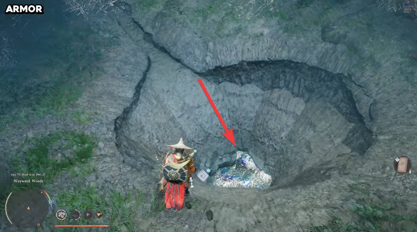 Travel deep into Wayward Woods and locate the glowing ore pit. These are visually distinct and slightly elevated compared to regular terrain.