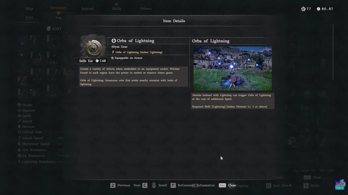 Once this condition is met, any attack imbued with lightning will have a chance to trigger the orb effect. Without this skill, the gear remains inactive, making it effectively useless.
