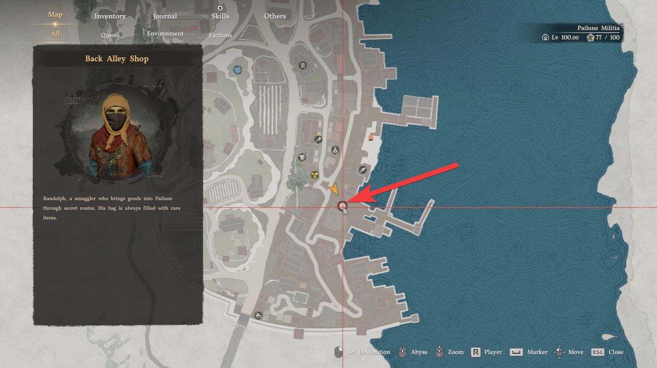 Fast travel or navigate to Pailune’s Port area. This is the central hub where most trade and vendor activity occurs.