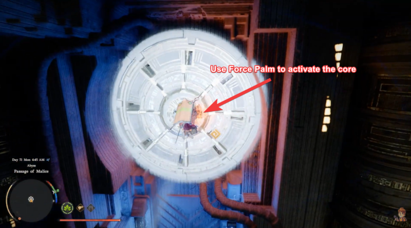Use Force Palm to activate the Abyss Core, completing the puzzle’s primary objective.