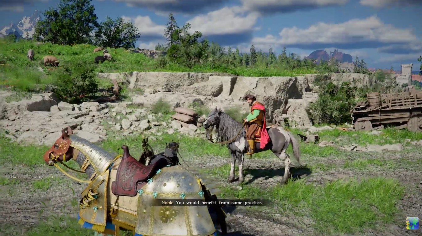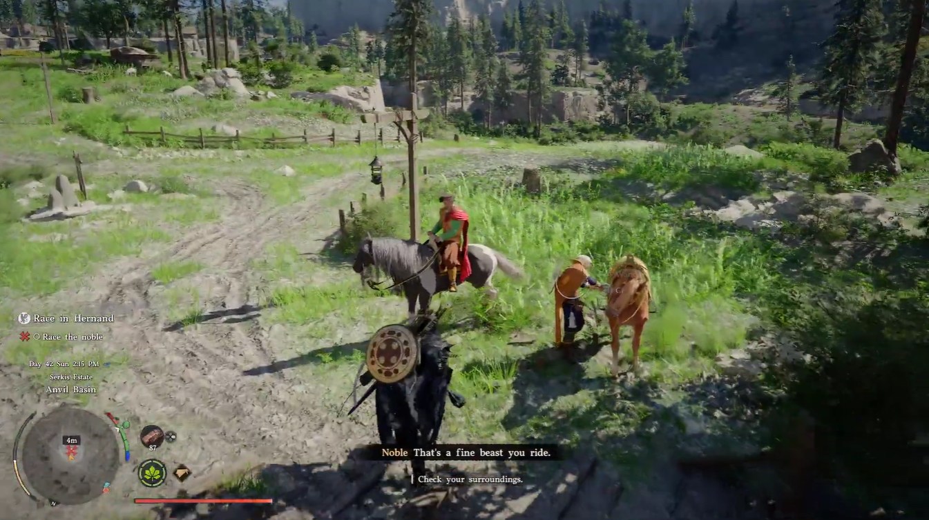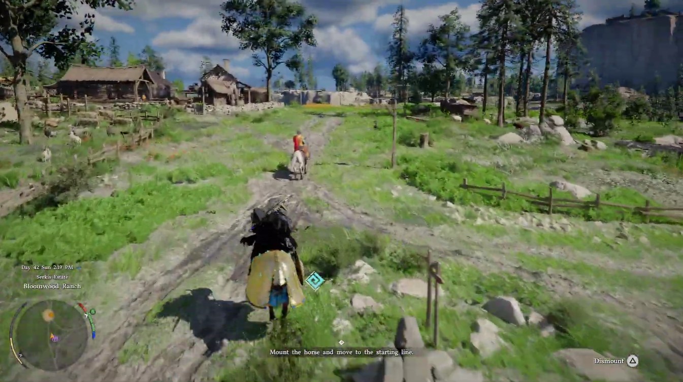 At the ranch, you’ll encounter a noble NPC who initiates the challenge. Speaking to him triggers a dialogue where he proposes a race. The destination is clearly defined: reach the House of Healing before him.
