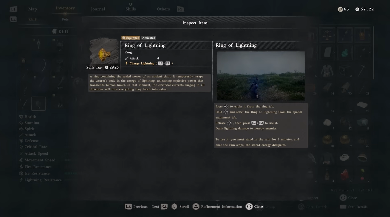 • The ring grants a powerful lightning-based charge attack with unique activation conditions.