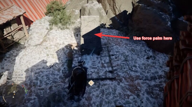 This is where Force Palm becomes essential. When you use it on the structure, it opens up a hidden basement entry. Drop down carefully, as this leads directly into the puzzle chamber.