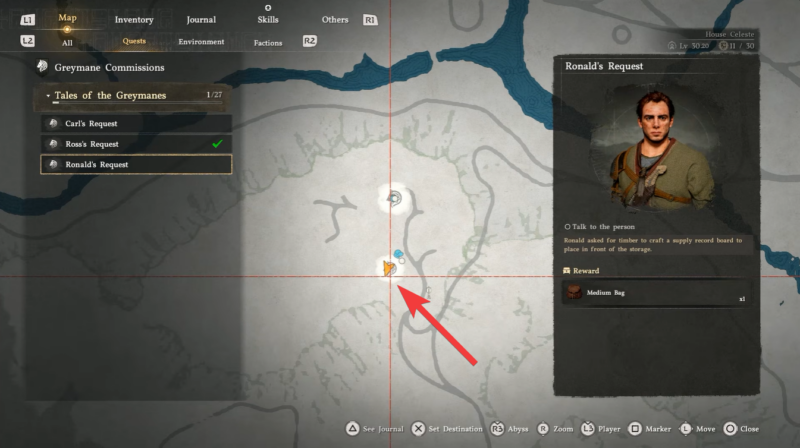 Ronald’s Request acts as an early introduction to gathering mechanics and inventory management. Even though it’s a basic fetch quest, it reinforces systems you’ll rely on throughout the game.