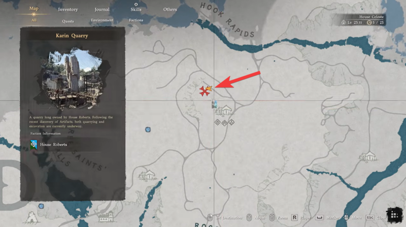 Before you can begin the quest properly, the Karin Quarry must already be cleared of enemies, and the boss defeated. This step is essential because the NPC required to initiate the quest only appears after the area is secured. Once the quarry is liberated, the environment becomes more interactive, allowing you to explore freely without combat interruptions.