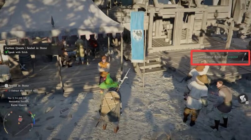 After clearing the quarry, head to the middle of the camp and look for Erich. He is positioned in a noticeable spot where workers would typically gather. Initiating dialogue with him triggers the quest progression and provides context about the sealed relic.