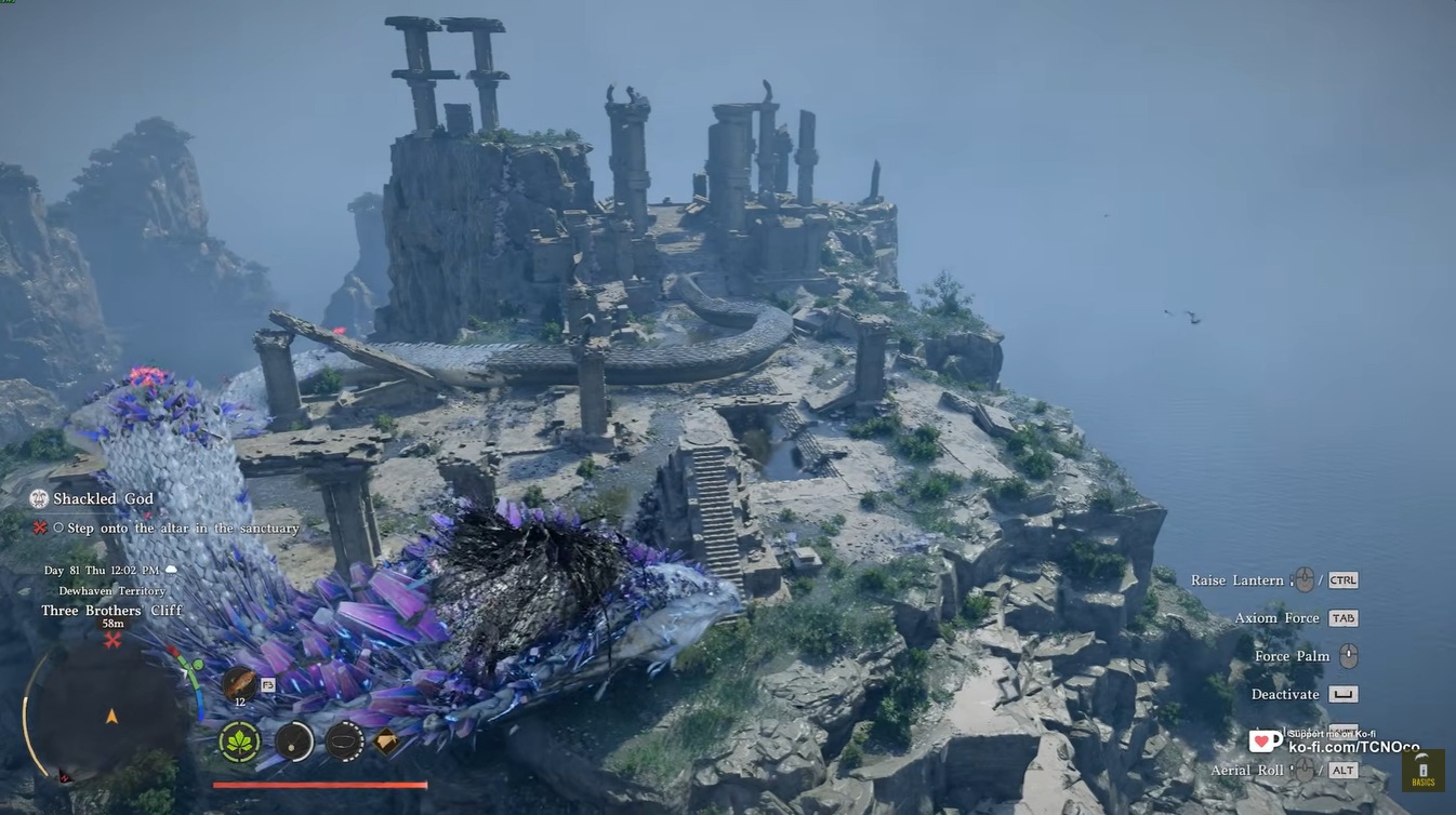 Watch for movement and environmental shifts. Aeserion may reposition or cause instability, so maintain balance and avoid falling while climbing.