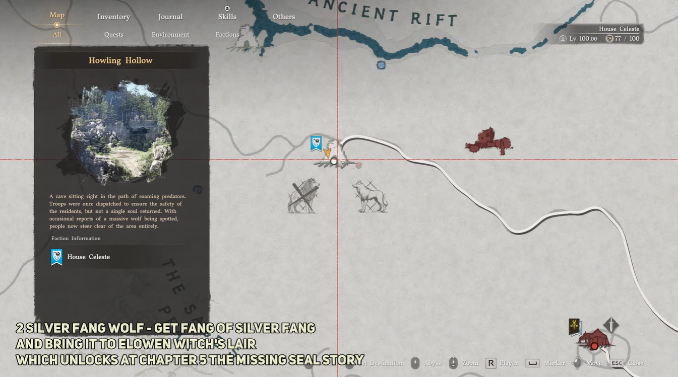 The Silver Fang Wolf is located near Howling Hollows in the Ancient Rift of the Pailune region. Once you reach the Forest of Wolves area, you’ll need to locate a cave where the beast resides. This is not accessible until you complete the required faction questline, so don’t expect to encounter it early.