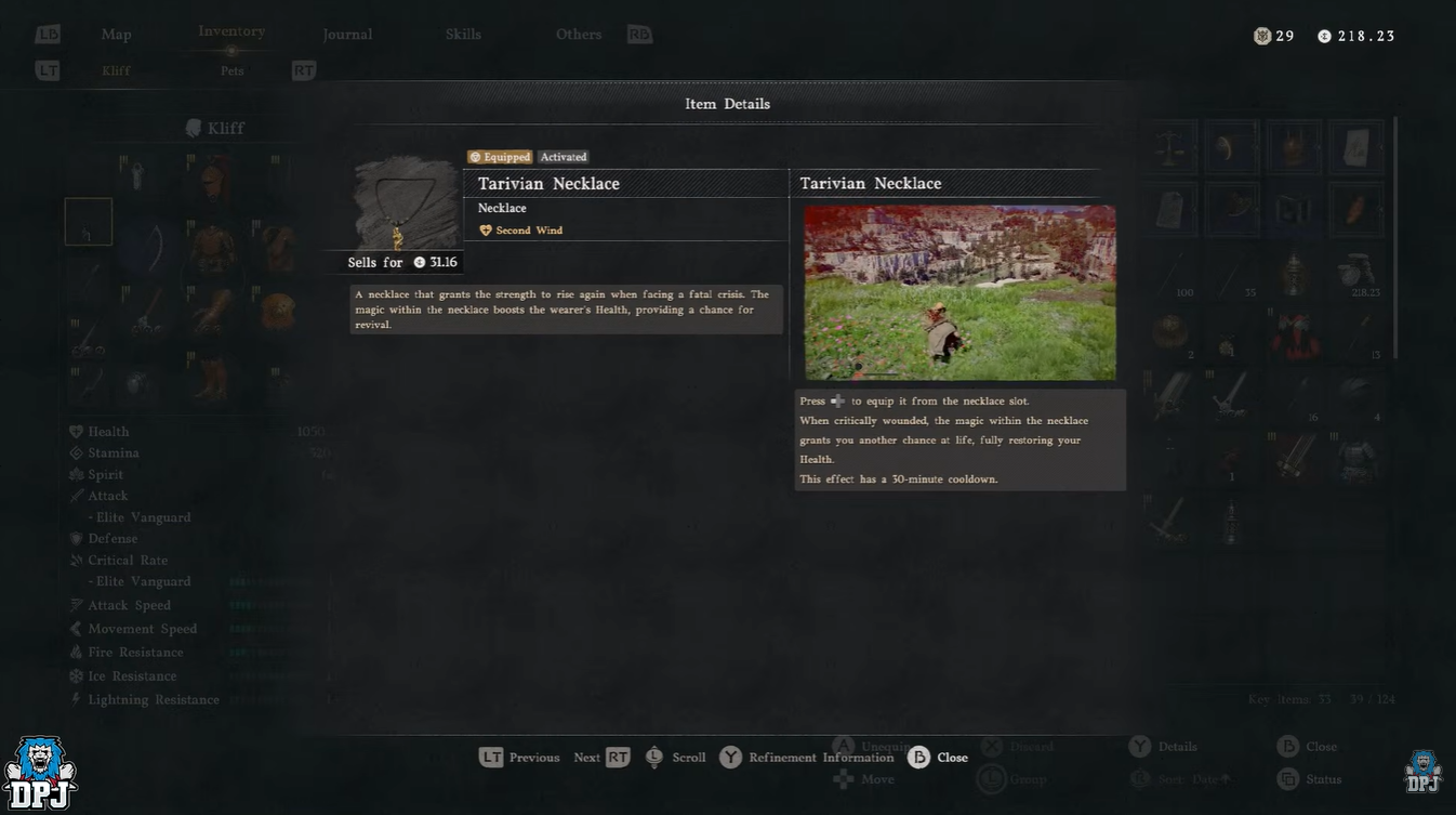 • Tarivian Necklace grants a full revive (“Second Wind”) when critically wounded