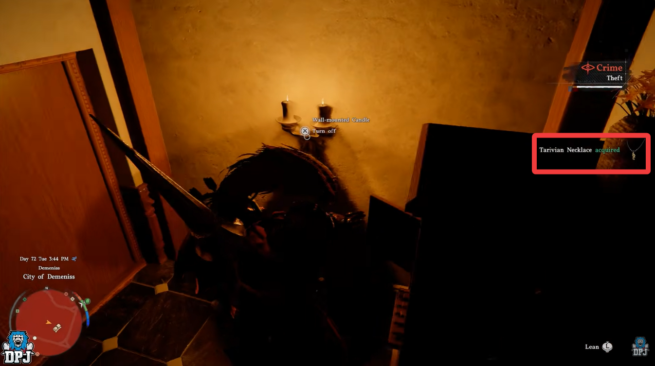 • You must perform a stealth theft inside Demeniss using a mask and key